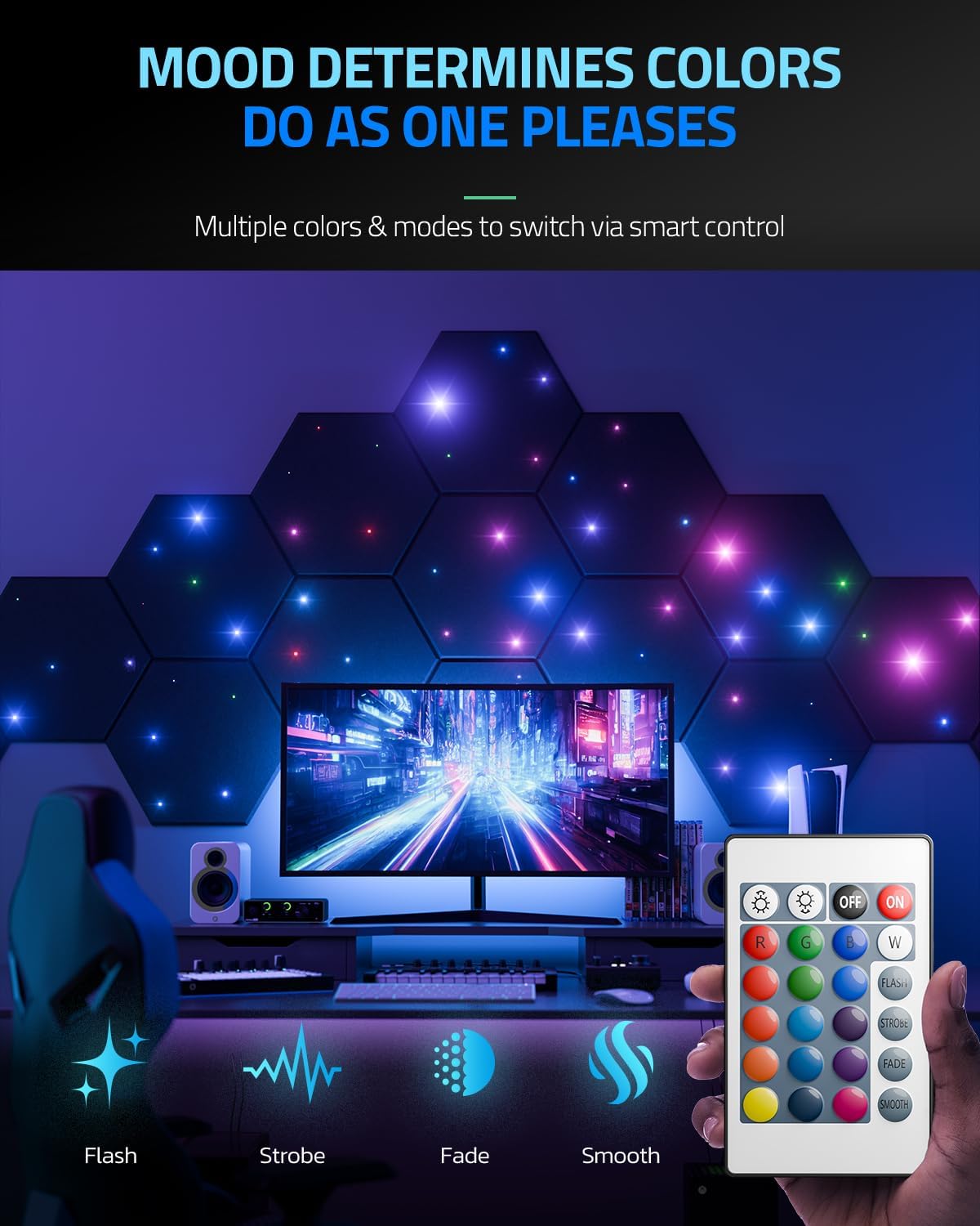 Create a serene environment with our Hexagon Acoustic Panels, designed to effectively absorb noise and minimize echoes. The fiber optic starlight feature adds a touch of elegance and sophistication to your walls, making them a standout decorative piece in any room.
